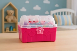 Izdržljiva plastična škrinja s prozirnim poklopcem drži sve dijelove na okupu – idealno za putovanja i bazen.