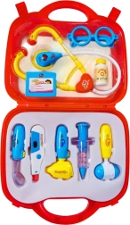 Zabavni liječnički set u praktičnom koferu razveselit će sve male doktore. Sadrži sigurne plastične alate za igru pregleda, kao što su stetoskop sa zvučnim efektima, šprica, termometar i drugi dodaci. Zahvaljujući prijenosnom koferu sve je pregledno posloženo i spremno za put. Potiče empatiju, kreativnost i finu motoriku te pomaže djeci bolje se upoznati s okruženjem ordinacije.