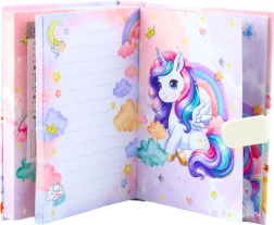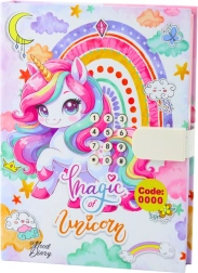 Dnevnik s motivom jednoroga odličan je izbor za djecu koja žele svoje misli držati na sigurnom. Zahvaljujući kombinacijskoj bravi s mogućnošću promjene koda dijete ima svoju privatnost potpuno pod kontrolom. Po otvaranju začut će se radosna melodija koja uljepšava svako pisanje.