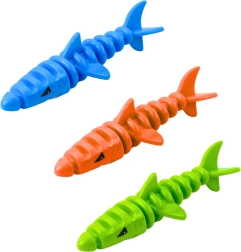 Otkrijte vodenu zabavu sa setom od tri šarena morska psa koji motiviraju djecu na ronjenje i traženje igračaka na dnu bazena. Zahvaljujući uravnoteženoj težini stabilno tonu, imaju glatku površinu i lako ih je uhvatiti i manjim rukama. Odlično za igru, vježbanje orijentacije pod vodom i izgradnju samopouzdanja pri plivanju.