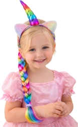 Ova dječja traka za kosu s duginim rogom jednoroga i svjetlucavim uškama očarat će izražajnim bojama i zabavnim dizajnom. Duge sintetičke vlasi u raznobojnim nijansama pričvršćene su na traku, pa je lako plesti pletenice, stvarati repiće i fantazijske frizure.