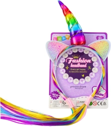 Čarobna traka za kosu s motivom jednoroga pretvara svako dijete u zvijezdu bajkovitog svijeta. Dugini rog, svjetlucave uške i duge višebojne vlasi pozivaju na pletenje pletenica i izradu maštovitih frizura. Lagana i univerzalno prilagodljiva konstrukcija udobna je i pri duljem nošenju – idealna za igru, rođendane, karnevale i fotografiranje.