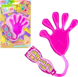 Zabavna ljepljiva ručica od elastične gume za beskrajnu igru. Djeca je mogu bacati, lijepiti na glatke površine, razvlačiti i stiskati – uvijek se vraća u izvorni oblik. Daje dojam „mokrog“, ali ruke ostaju potpuno suhe. Idealna za razvoj spretnosti, refleksa i koordinacije. Prodaje se pojedinačno, boja je nasumično odabrana.