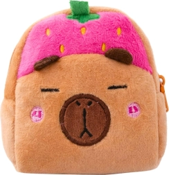 Ovaj slatki novčanik/mini etui od mekoga pliša prima kovanice, novčanice, slušalice, ključeve i druge sitnice. Dizajn uspavane kapibare s ružičastom jagodnom kapicom i vezenim detaljima oduševit će i djecu i odrasle koji vole sladak, mekani stil.
