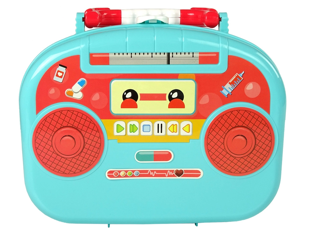 Kofer u razigranom obliku s “zvučnicima” i tiskanim gumbićima potiče maštu i daje ulozi liječnika novu dimenziju.