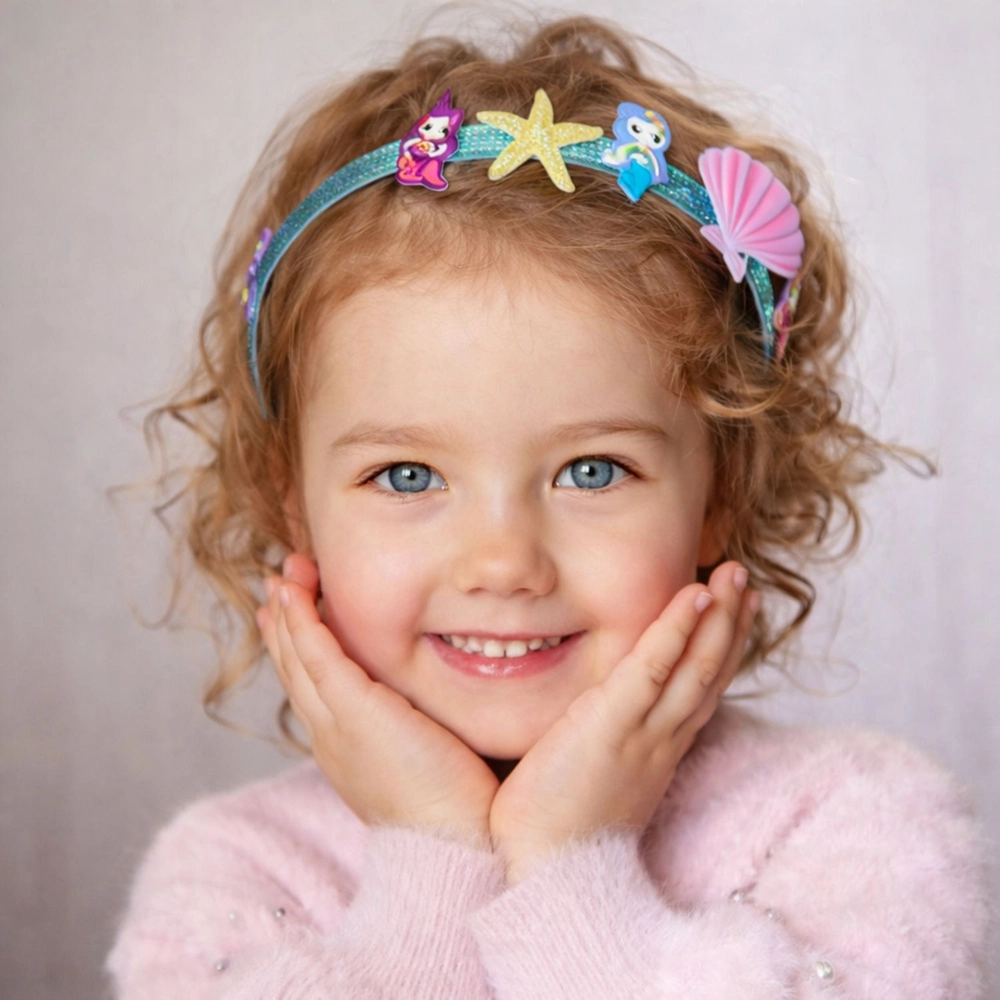 Otkrijte zabavan kreativni set za djecu uz koji mogu lako izraditi vlastite obruče za kosu u pastelnim bojama s morskim motivima. Zahvaljujući samoljepljivim ukrasima izrada je jednostavna, sigurna i bez ljepila i škara. Set potiče kreativnost, finu motoriku i omogućuje izradu originalnih dodataka s ljuskicama, morskim zvijezdama i repićima morske sirene.