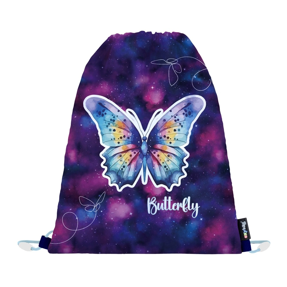 Set upotpunjuje lagana vrećica za tjelesni ili papuče s jednostavnim zatezanjem uzica te pregledna jednostruka pernica s dva preklopa i gumenim držačima. Na unutarnjem preklopu pernice nalazi se prozirna folija za raspored sati – sve usklađeno u atraktivnom motivu s leptirima.