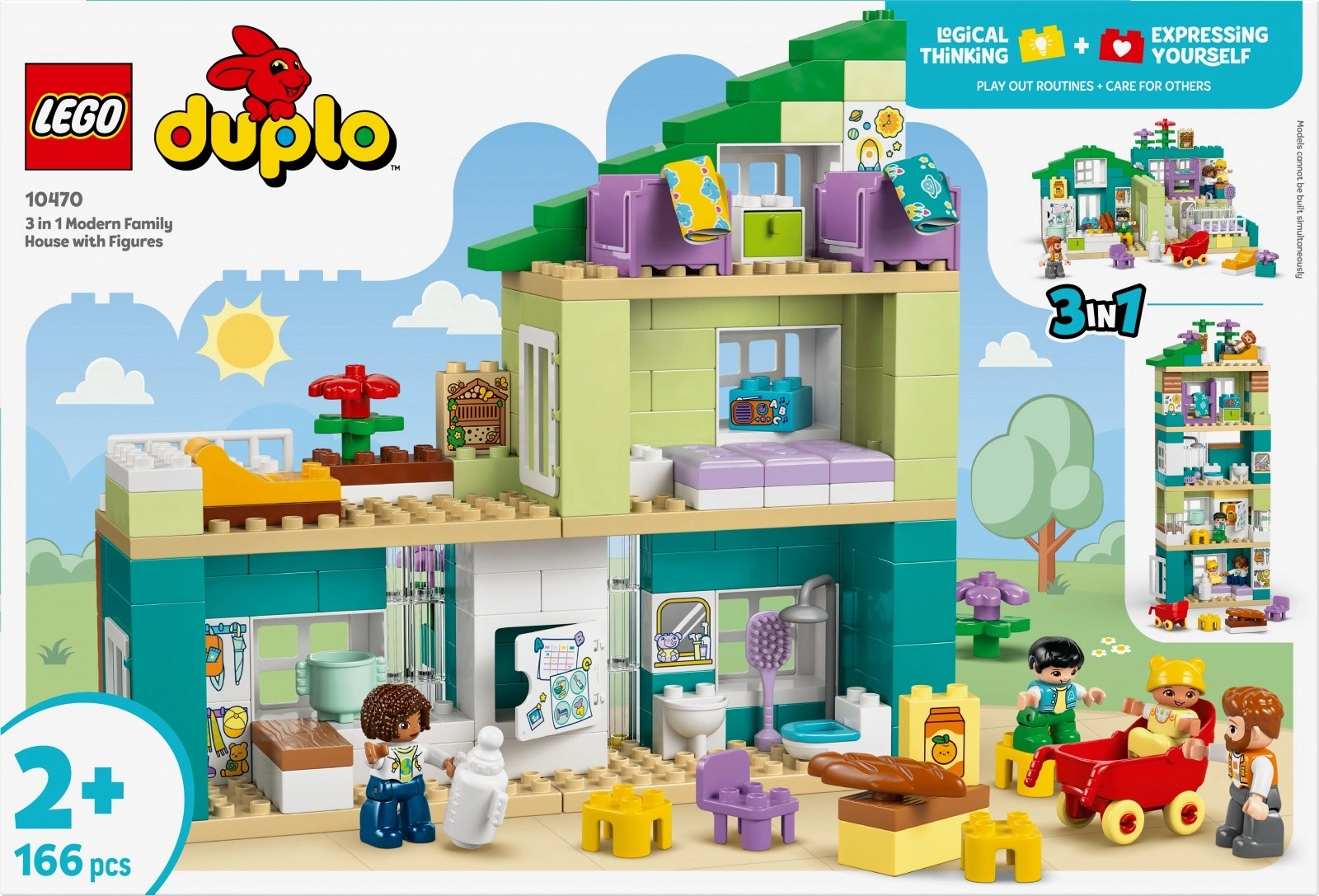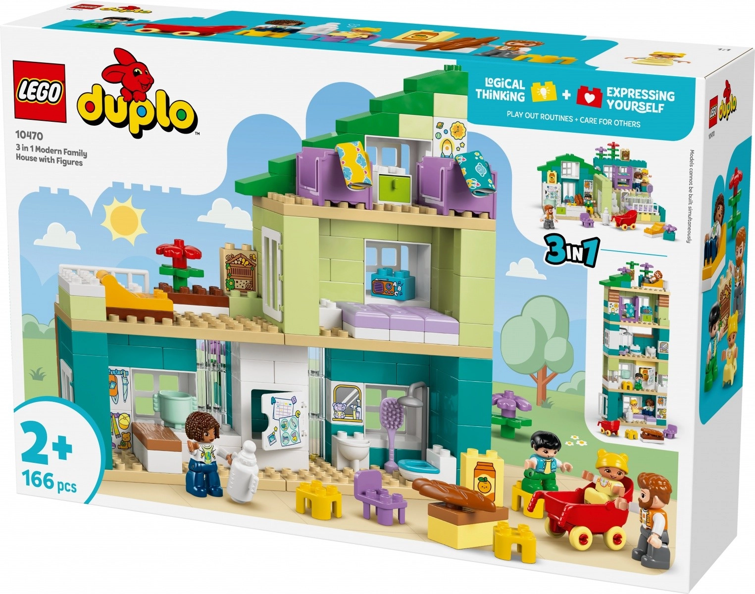 LEGO DUPLO Moderni obiteljski dom 3 u 1 donosi djeci beskrajne mogućnosti stvaranja. Zahvaljujući trima varijantama gradnje, mali graditelji uvijek će pronaći novi raspored prostorija i detalje za otkrivanje. Šareni, lako prihvatljivi dijelovi i promišljeni dodaci inspiriraju na pričanje priča iz stvarnog života.