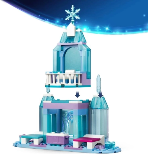 Uđite u ledeni svijet pun mašte. Dvoslojni dvorac u nježnim plavo‑ljubičastim tonovima s prozirnim “ledenim” elementima nudi tron dvoranu, balkon, dva kreveta i ugodan kuhinjski kutak. Odvojena staza sa stubištem i troje saonica dodaju dinamiku igri – idealno za stvaranje vlastitih priča s Elzom, Annom, Olafom i malim zmajićem Brunijem.