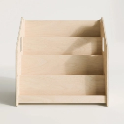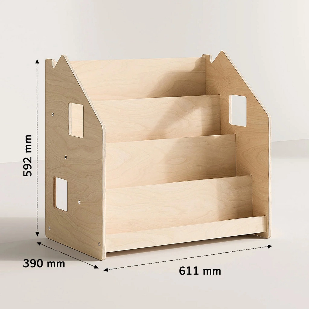 Stalak je izrađen od kvalitetnog brezinog šperploča i tretiran sigurnim lakovima na bazi vode. Pažljivo zaobljeni rubovi i stabilna konstrukcija osiguravaju sigurnu upotrebu i u dječjoj sobi. Prirodna odstupanja drveta (godovi ili manje korekcije) svakom komadu daju jedinstven karakter.