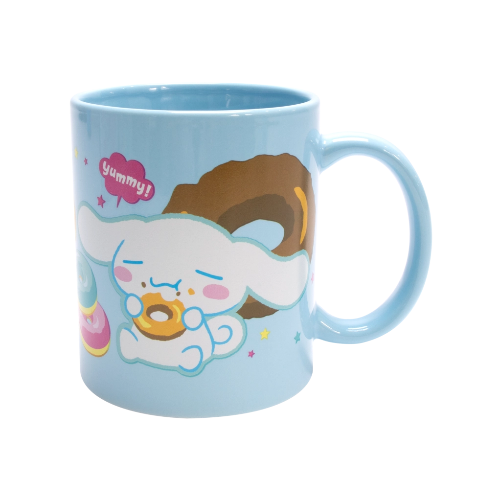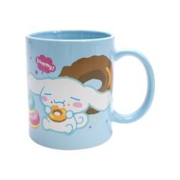 Svijetloplava keramička šalica s motivom Cinnamorolla i krafni, idealna za jutarnju kavu i večernji čaj. Sjajna glazura i udobna drška za ugodno držanje.