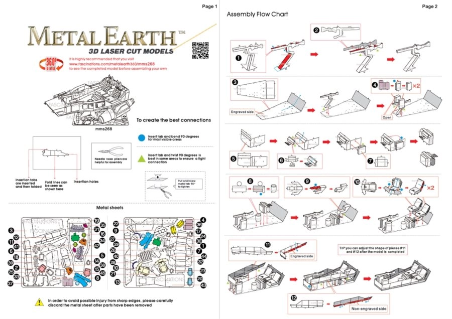Set se sastoji od čeličnih listova 11 × 11 cm, a pojedini se dijelovi spajaju pomoću pametnih zasuna s kukicom – bez ljepila. Za lakšu montažu preporučujemo male bočne rezače i tanka kliješta.
