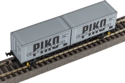 Model kontejnerskog vagona s motivom „VEB PIKO” vjerno prikazuje vagon Deutsche Reichsbahn iz epohe IV (cca 1970.–1990.). Zahvaljujući preciznom tisku, oštrim detaljima okvira i podvozja te autentičnim natpisima, odličan je izbor za sakupljače i aktivne modelare. U kompletu su već montirana 2× 20' kontejnera koja vašoj teretnoj kompoziciji daju realističan karakter.