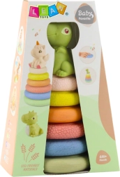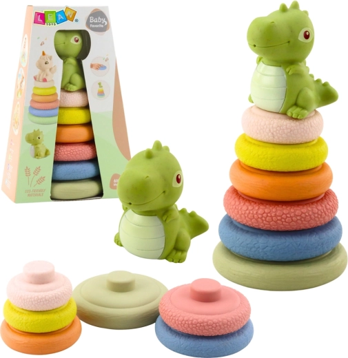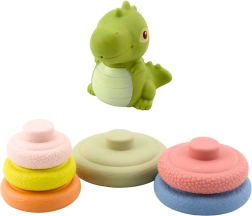 Šarena senzorna piramida s preslatkim dinosaurom idealna je za djecu od 6 mjeseci. Sadrži različite teksture za osjetilnu stimulaciju, mekane sigurne elemente te potiče finu motoriku, koordinaciju oko–ruka i logičko razmišljanje. Dinosaur na vrhu pri pritisku ispušta zvižduk koji potiče interakciju.
