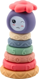 Ova mekana senzorička piramida spaja igru i učenje u jednom. Svaki prsten ima drugačiju teksturu, uzorak i reljef, koji pružaju poticaje za taktilno istraživanje i razvoj osjetila. Djeca prirodno vježbaju razvrstavanje po veličini, uče redoslijed i grade ravnotežu cijelog tornja.