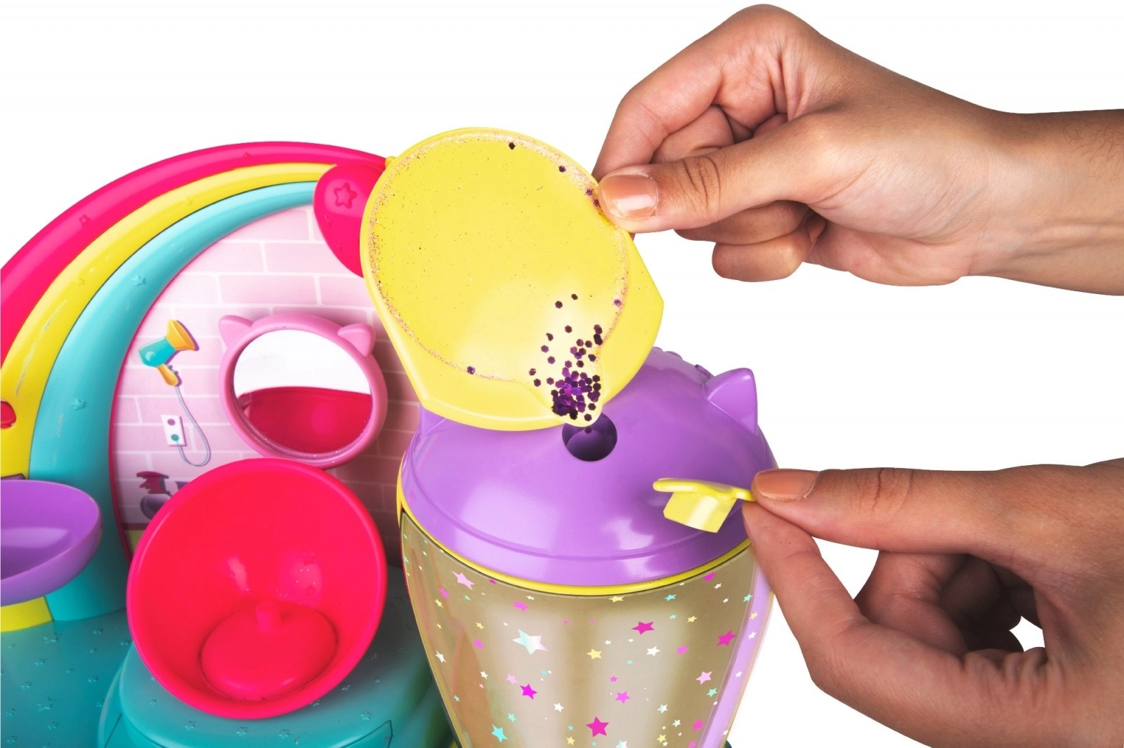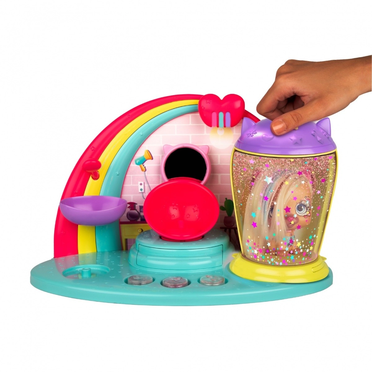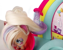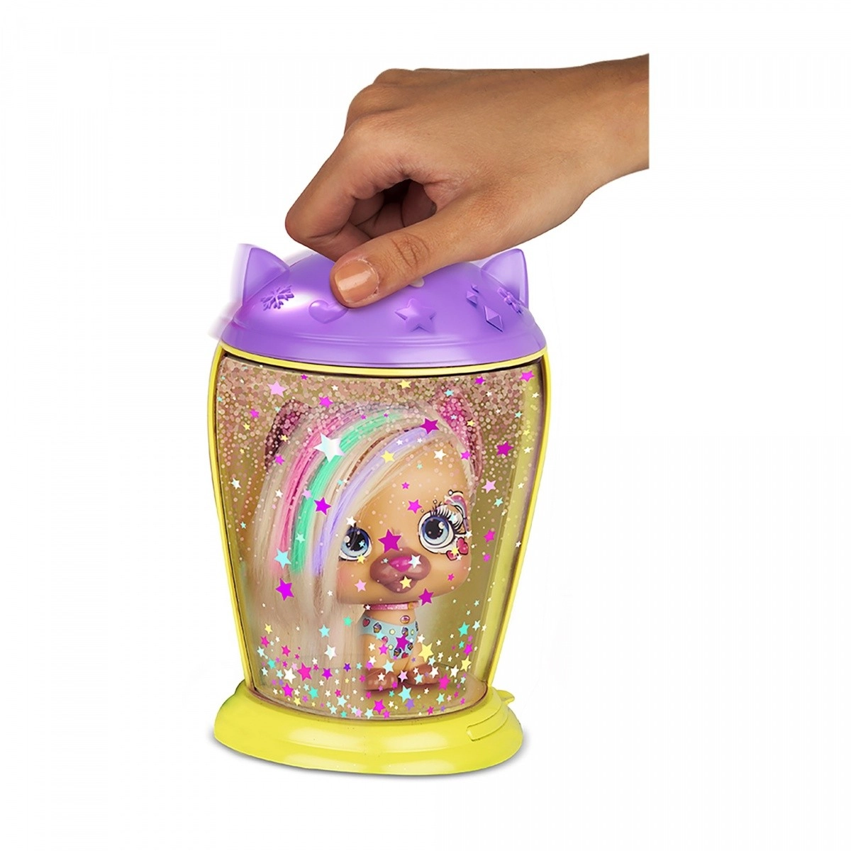 Smjestite figuricu u komoru, aktivirajte poklopac i gledajte kako se kosa sjaji zvjezdicama i šljokicama.