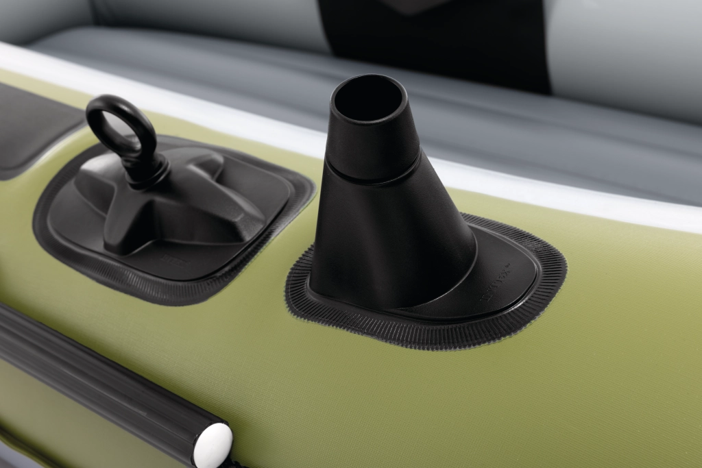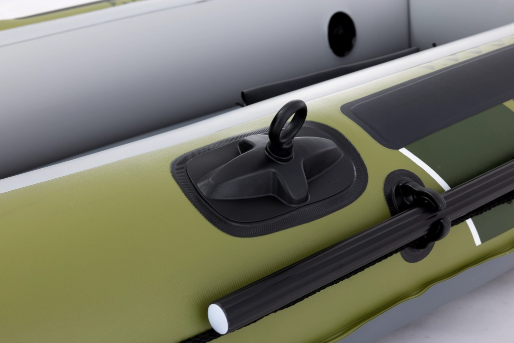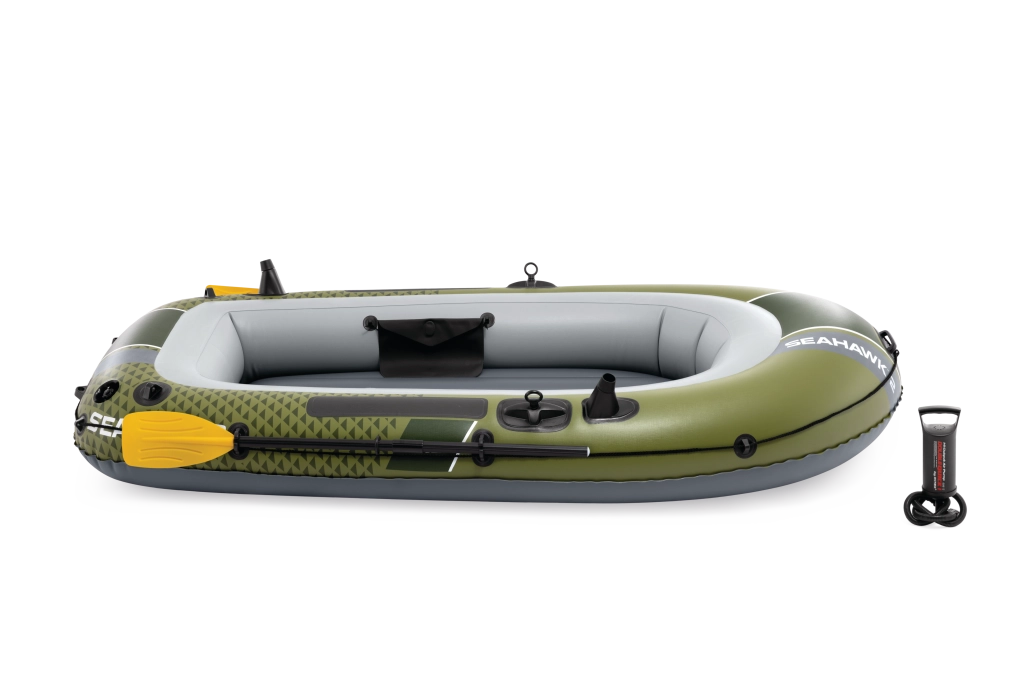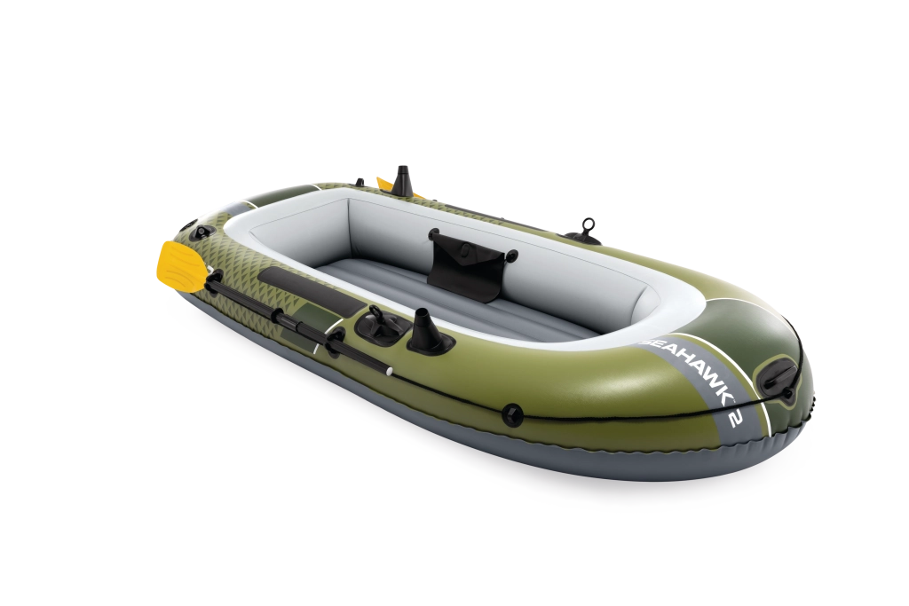 Seahawk 2 u atraktivnom zeleno-sivom dizajnu spaja stabilnost i udobnost. Izdržljiv PVC materijal otporan je na trganje i habanje, dok tri zračne komore uključujući sigurnosnu unutarnju komoru osiguravaju mirnu plovidbu i u zahtjevnijim uvjetima. Nafukivi pod s I-gredom donosi čvrst i udoban osjećaj pri sjedenju i stajanju.