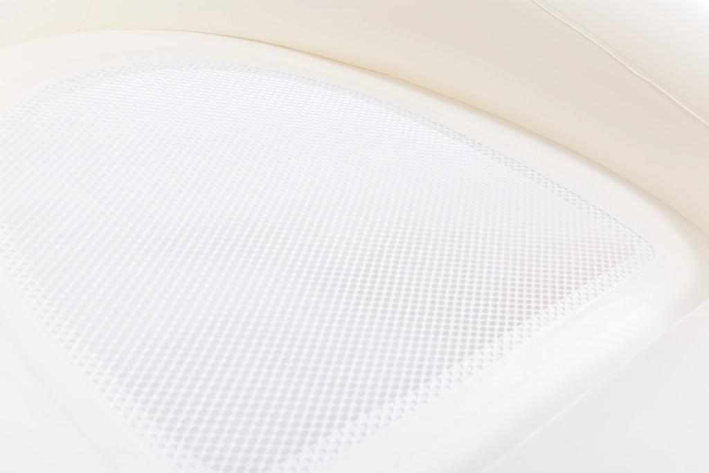 Prozračna mrežica omogućuje protok vode, pa ostajete ugodno osvježeni i tijekom duljeg opuštanja.