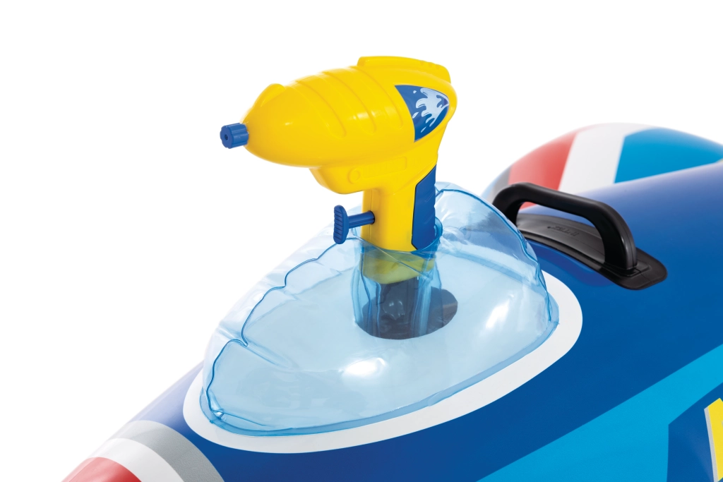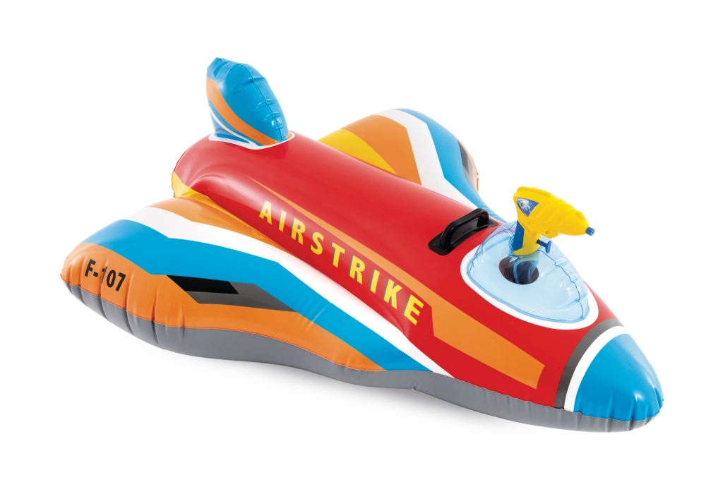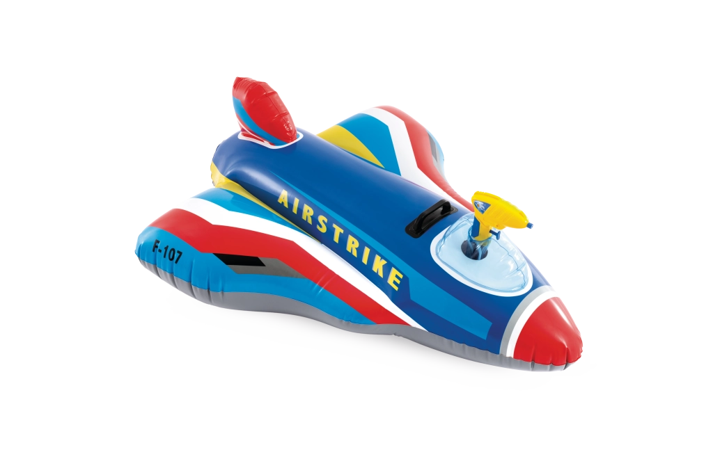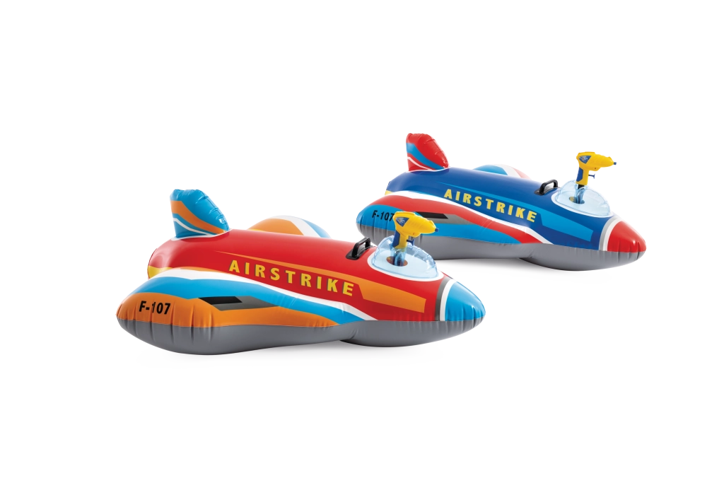 Napuhujući lovac AIRSTRIKE F-107 pretvara svaki bazen u akcijsku zračnu pistu. Zahvaljujući širokim krilima i stražnjem stabilizatoru vrlo je stabilan i udoban za mlađu djecu. Integrirani vodeni pištolj u kokpitu omogućuje lako špricanje vode i osigurava beskrajnu zabavu.