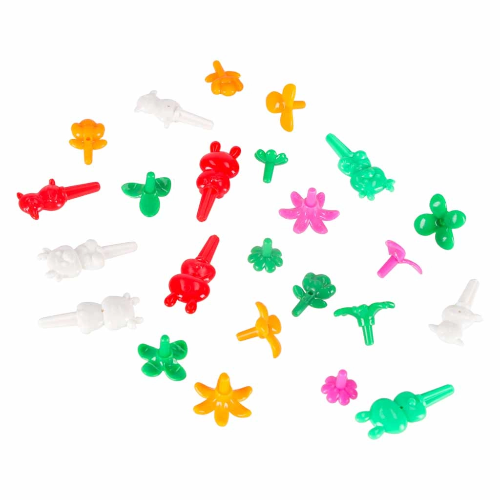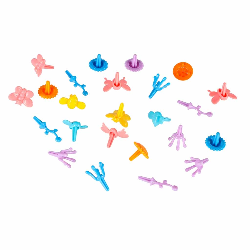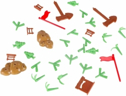 - 1× svjetleći autić s figuricom, 13× segment staze, 15× donja spojnica, sklopivi most i rampa, stijene (2 kom), nasipi (5 kom), ograde (5 kom), zastavice (2 kom), putokazi (2 kom), cvijeće sa stabljikama (84 kom), drvca (2 kom), leptirići (9 kom), male životinjice (9 kom), upute