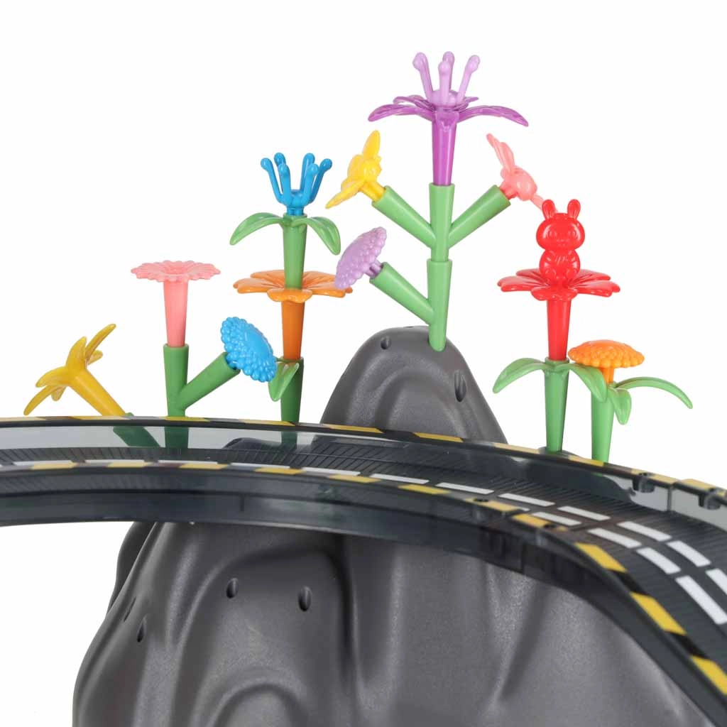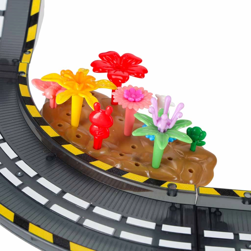 Riječ je o edukativnoj igrački koja prirodno razvija kreativnost, logičko razmišljanje i sposobnost planiranja. Svako novo slaganje je nova priča – djeca mogu dodavati cvijeće, drveće, ograde, stijene i zastavice te stvarati originalna okruženja za trkaće vožnje.