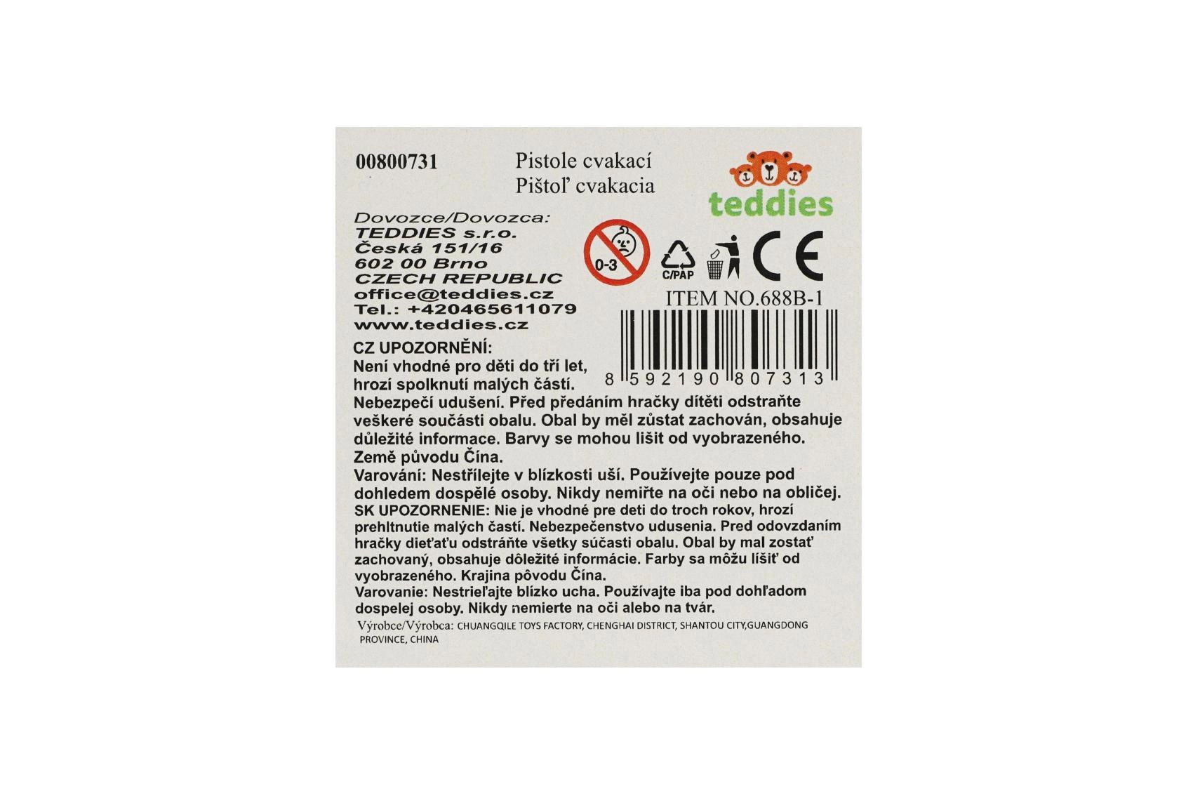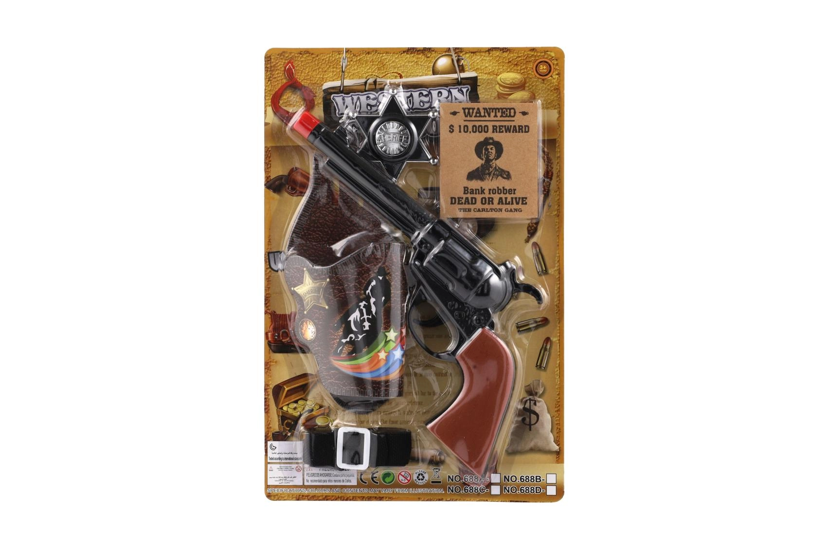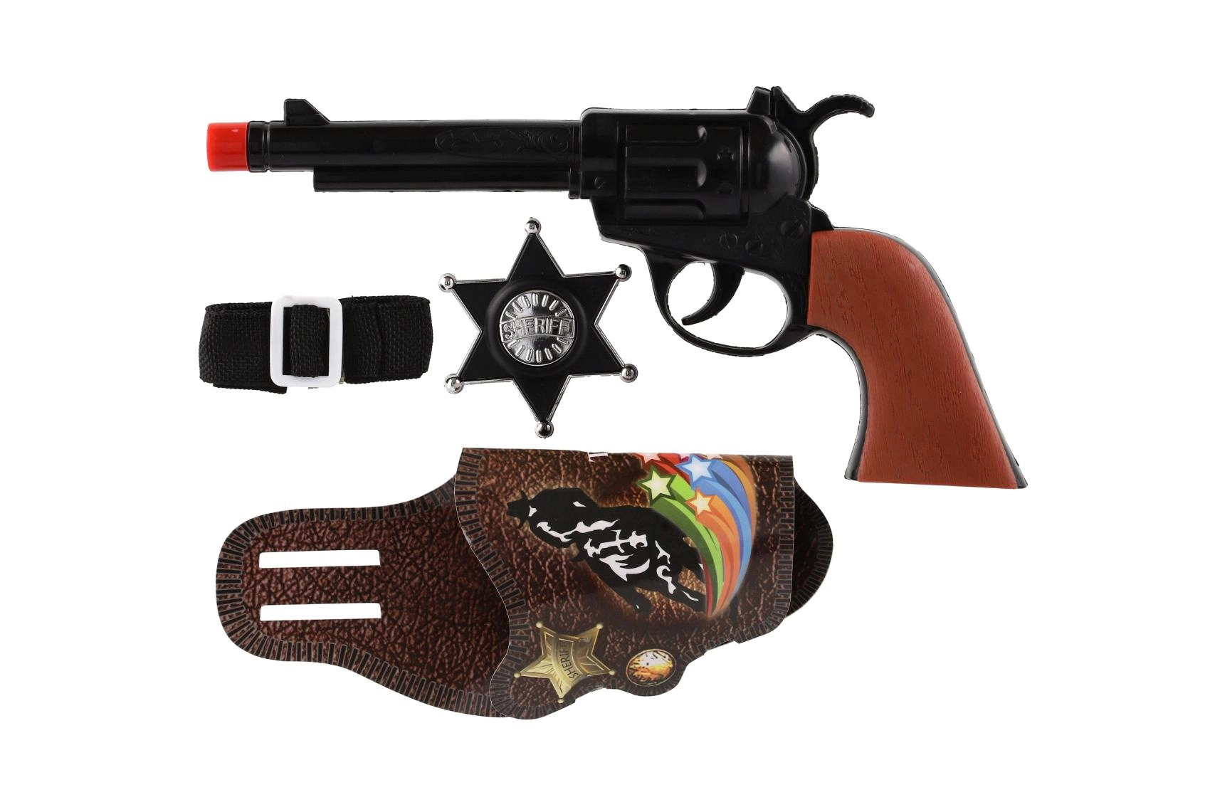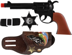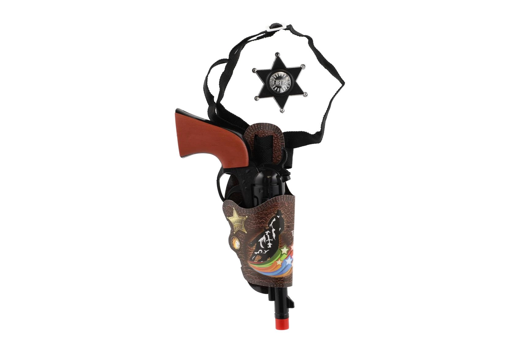 Dječji klapkasti pištolj s dodacima idealan je za igre kauboja i šerifa. Izrađen je od lagane plastike, pritiskom na okidač proizvodi tipičan klapkasti zvuk bez metaka, a zahvaljujući duljini oko 22 cm dobro leži u dječjoj ruci. Pakiranje sadrži tematske dodatke koji potiču maštu i proširuju mogućnosti igre.