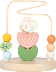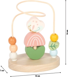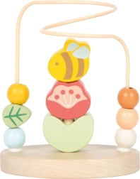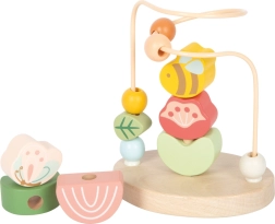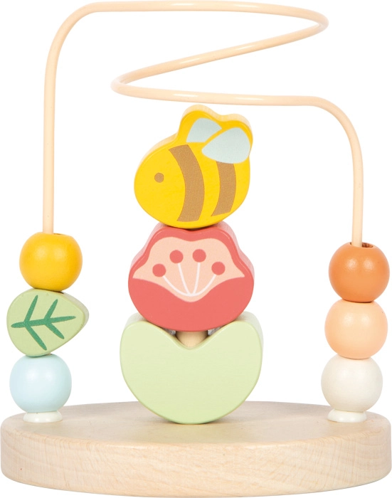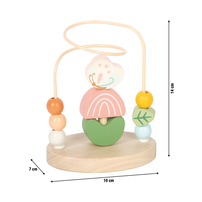 Motorički labirint Livada small foot donosi djeci radost otkrivanja i učenja. Čvrsta metalna petlja s obojenim drvenim perlama omogućuje glatko pomicanje koje prirodno potiče razvoj fine motorike i preciznog hvata. U sredini je sklopiva mini igra sa šest drvenih dijelova (pčelica, leptir, 2 latice, 2 lista) koja potiče koncentraciju i logičko razmišljanje.