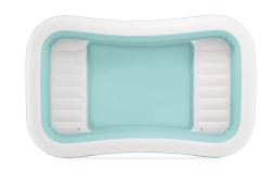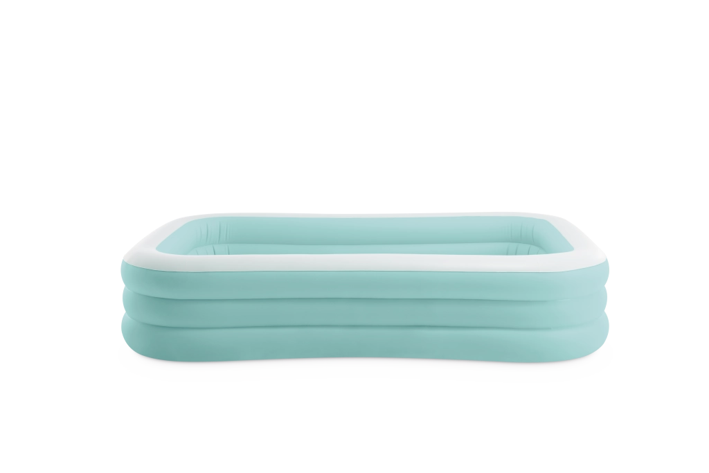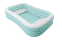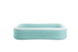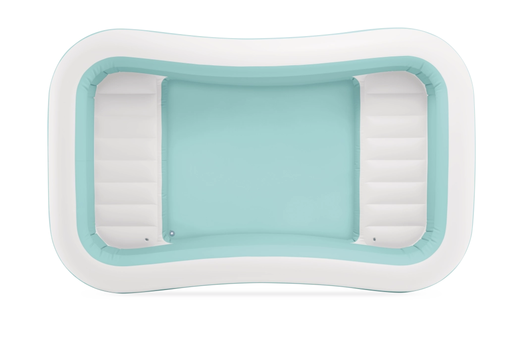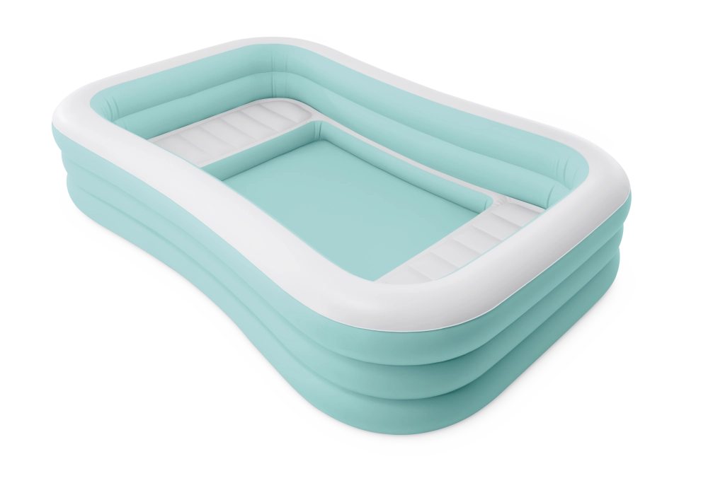 Nafukovací bazen Swim Center Family Lounge idealan je za obiteljski odmor u vrtu ili na terasi. Pravokutni oblik s blago zaobljenim kutovima te kombinacija svijetloplave i bijele boje djeluju svježe i elegantno. Tri zasebne komore na napuhavanje osiguravaju čvrstoću, stabilnost i ugodnu visinu stijenki, tako da u kupanju mogu uživati djeca od 6 godina i odrasli.