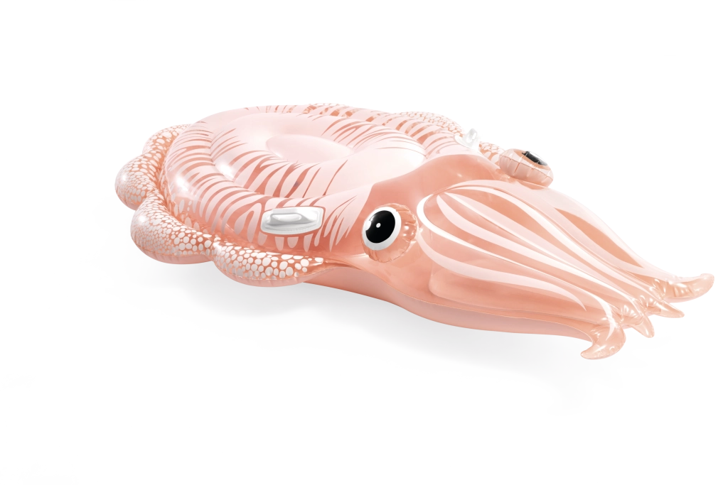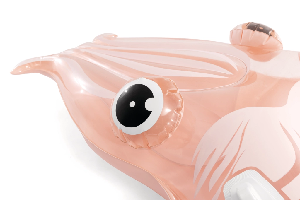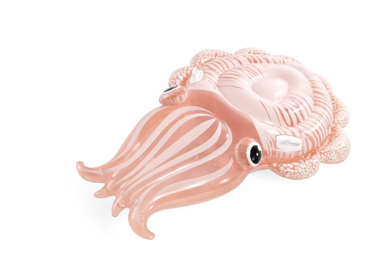 Nafukavajuća ležaljka u obliku sipe spaja originalan izgled s praktičnim funkcijama za sigurnu vodenu zabavu. Zahvaljujući prozirnom PVC-u s ružičasto-narančastim tonom i izraženim detaljima tijela sipe, djeluje vrlo atraktivno i savršeno se uklapa u ljetnu atmosferu uz bazen i na prirodnim vodenim površinama.