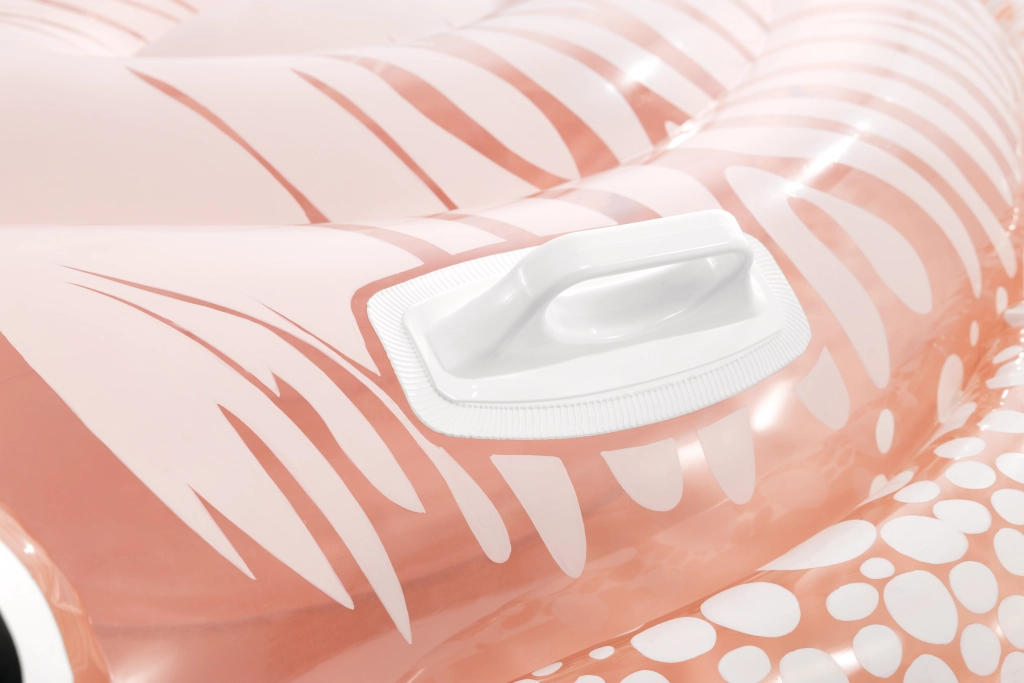 Ležaljka je namijenjena djeci od 6 godina i naglasak stavlja na sigurnost: dvije čvrste plastične ručke poboljšavaju stabilnost pri sjedanju i plutanju, a dvije odvojene zračne komore s sigurnosnim ventilima olakšavaju napuhavanje i ispuhavanje te smanjuju rizik od gubitka zraka. Veličina i ergonomski oblik pružaju dovoljno prostora za udobno ležanje i bezbrižno opuštanje na vodi.