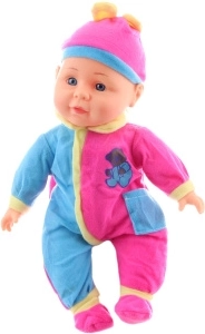 Slatka beba s mekim tělíškem, koja pri stiskanju izdaje zvukove smijeha, plača i riječi mama, tata. Odjevena je u šarenu pidžamicu na čičak, koju je lako skinuti. Idealna za djecu od 3 godine i savršena za razvoj mašte i brige.