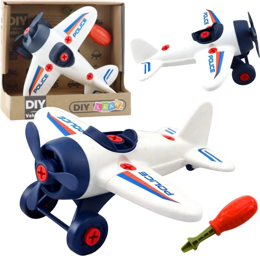 Policijski avion DIY za zavrtanje idealna je igračka za djecu koja vole stvaranje i tehniku. Zahvaljujući velikim, lako uhvatljivim vijcima dijete može avion više puta rastavljati i sastavljati, čime razvija strpljenje, samostalnost i koordinaciju oko–ruka. Nakon dovršetka gradnje može krenuti u akcijsku igru s rotirajućim propelerom i funkcionalnim kotačićima.