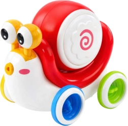 Interaktivni puzajući puž s glazbenim bubnjem i svjetlosnim i zvučnim efektima potiče senzorni razvoj, finu motoriku i koordinaciju oko–ruka. Zahvaljujući mekim silikonskim kotačićima, rotirajućem spinneru s perlicama i pokretnim očima privlači djecu i motivira ih na aktivnu igru i kretanje.