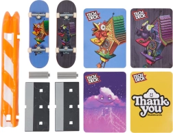 Otkrij zabavu s fingerboardima na novoj razini! Set Tech Deck Versus Series donosi 2 potpuno sastavljena mini skateboarda s autentičnim grafikama THANK YOU, uličnu prepreku (ogradu) i karte izazova za prijateljska nadmetanja. Idealno za trening preciznosti, koordinacije prstiju i kreativnosti – spremno za akciju odmah.