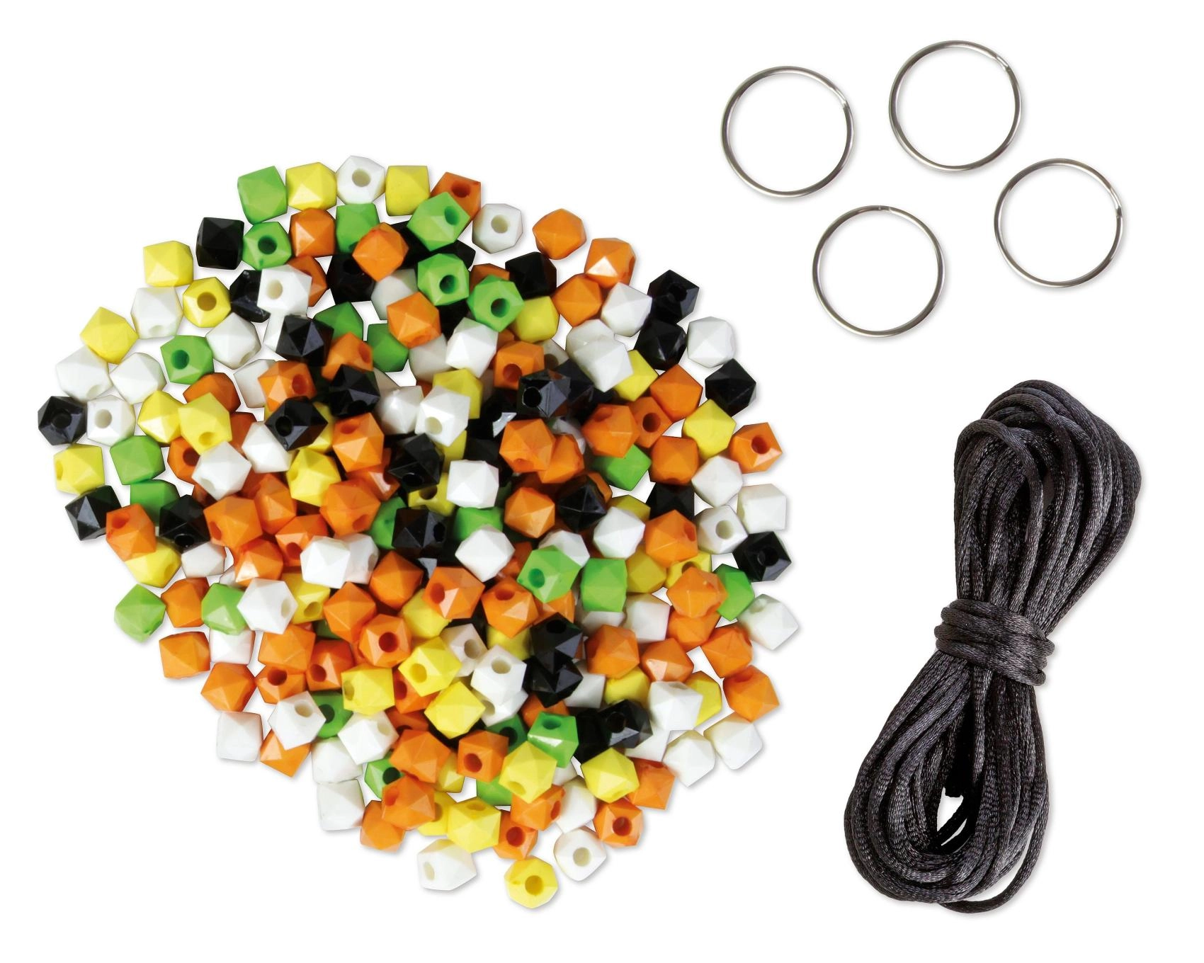 Set sadrži 250 šarenih perlica, crnu uzicu i 4 metalna prstena – ne trebate ništa dodatno, samo počnite.