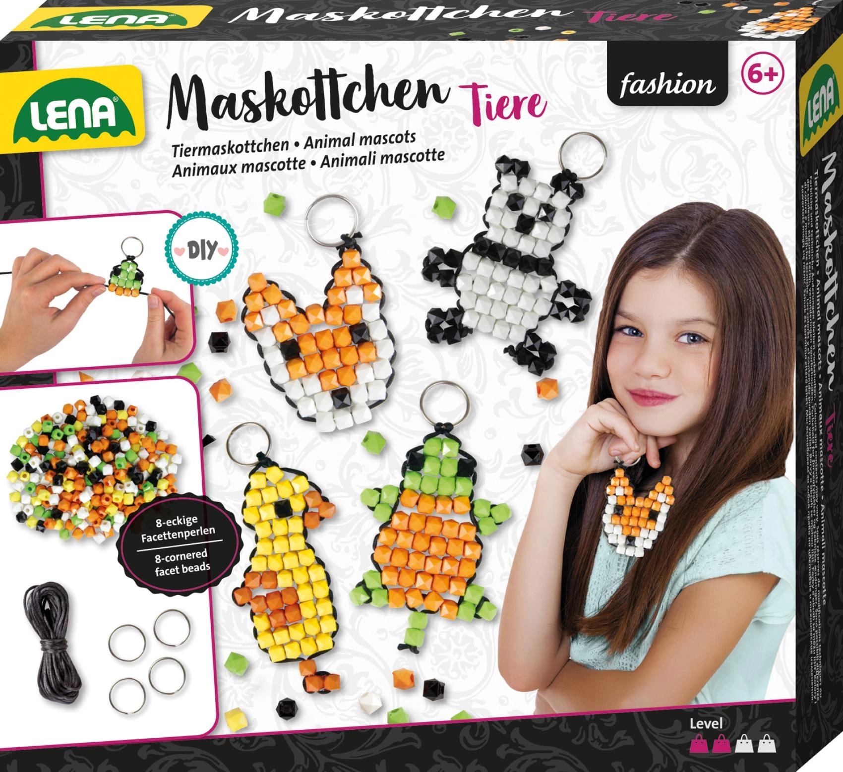 U pakiranju ćete naći 250 modernih perlica u raznolikim bojama, crnu uzicu za navođenje i 4 metalna prstena za dovršetak privjesaka. Postupak je jednostavan i intuitivan – dovoljno je nizati prema predlošku i u trenu ćete izraditi stylish talismane.