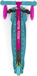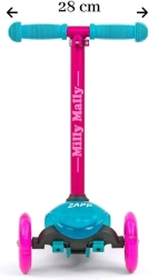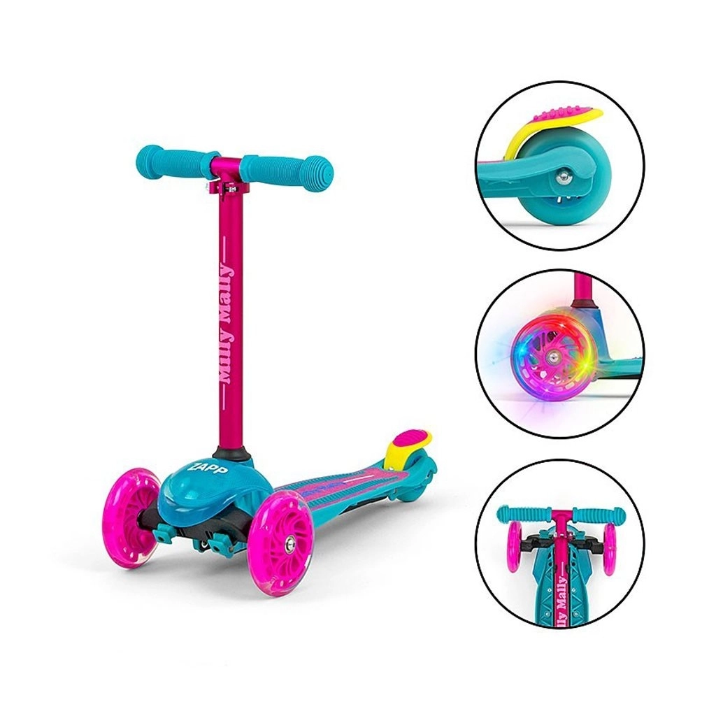 Lagan i stabilan dječji romobil MILLY MALLY Zapp s tri kotača i visinski podesivim upravljačem (61/66 cm) idealan je za djecu od 3 godine. Nudi jednostavno upravljanje nagibom tijela, svjetleće prednje kotače za veću zabavu i stražnju kočnicu s blatobranom za sigurnu vožnju. Maksimalna nosivost je 50 kg.
