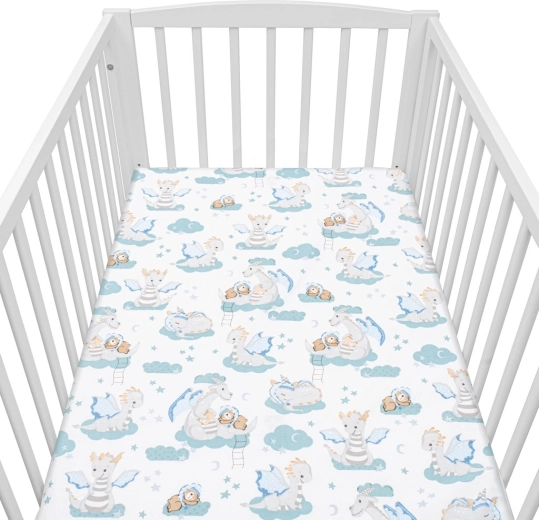 Meka i ugodna pamučna plahta sa motivom zmajića za dječji krevetić. Zahvaljujući glatkoj pamučnoj tkanini nježna je prema koži, a ušivena gumica oko ruba osigurava savršeno zatezanje i stabilnost na madracu 120 × 60 cm. Certifikat OEKO-TEX STANDARD 100 jamči sigurnost za djecu.