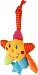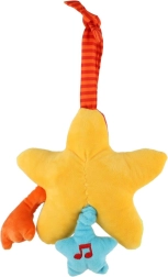 Preslatka viseća plišana zvjezdica s navijajućim glazbenim mehanizmom razveselit će bebe od 3 mjeseca. Nakon povlačenja za uzicu reproducira nježnu umirujuću melodiju, potiče mirno uspavljivanje i zabavu na putu. Mekani baršunasti pliš, vedre boje i nasmijano lice pozivaju na dodir i promatranje. Praktična petlja za vješanje omogućuje lako pričvršćivanje na krevetić, kolica ili autosjedalicu.