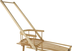 Drvene saonice s udobnim naslonom spajaju bezvremenski izgled s funkcionalnom izvedbom. Lagana, ali robustna drvena konstrukcija osigurava dug vijek trajanja i jednostavno manevriranje. Metalni klizači na donjoj strani pružaju gladak kliz na snijegu i bolju izdržljivost pri vožnji po raznolikom terenu.