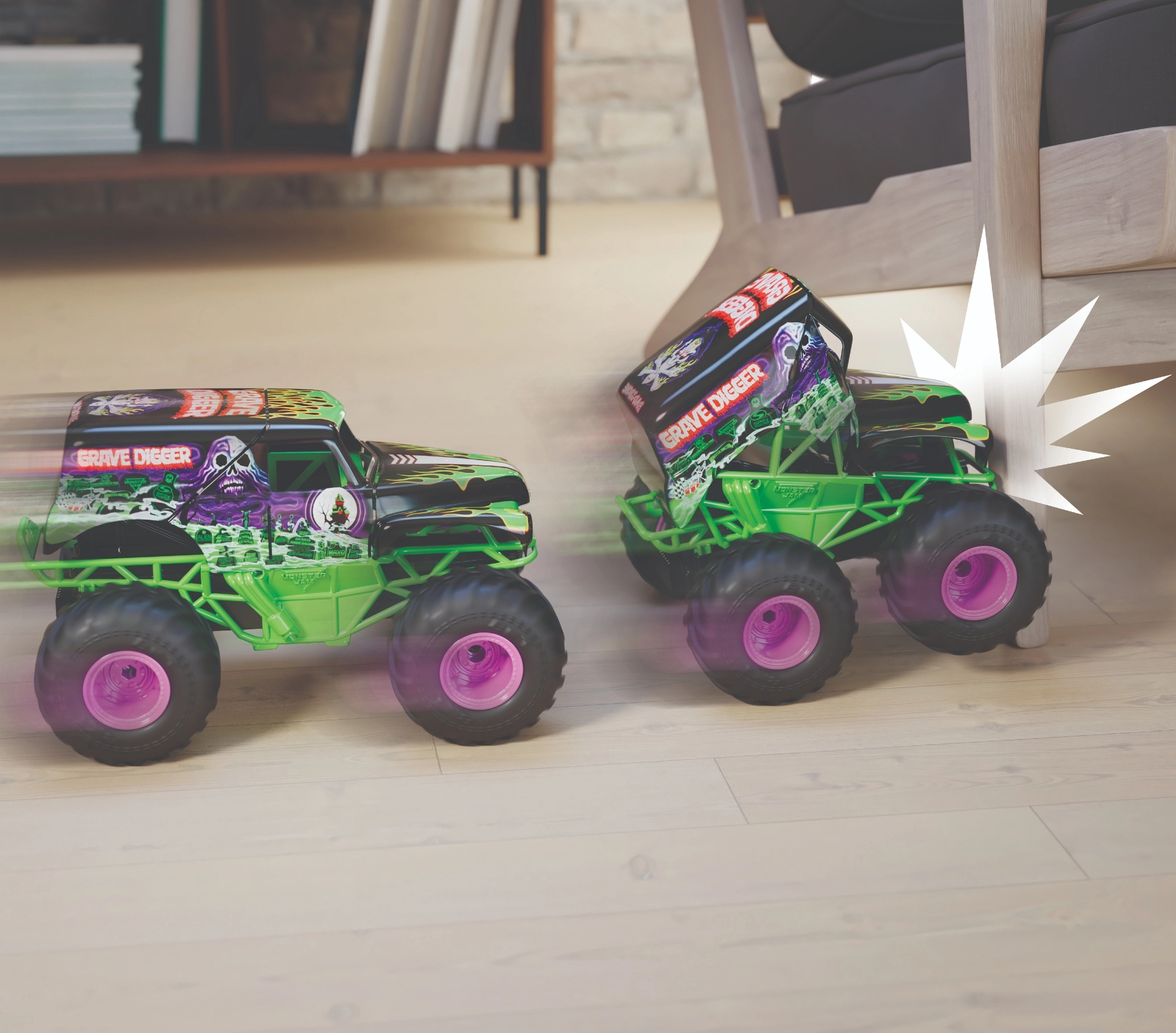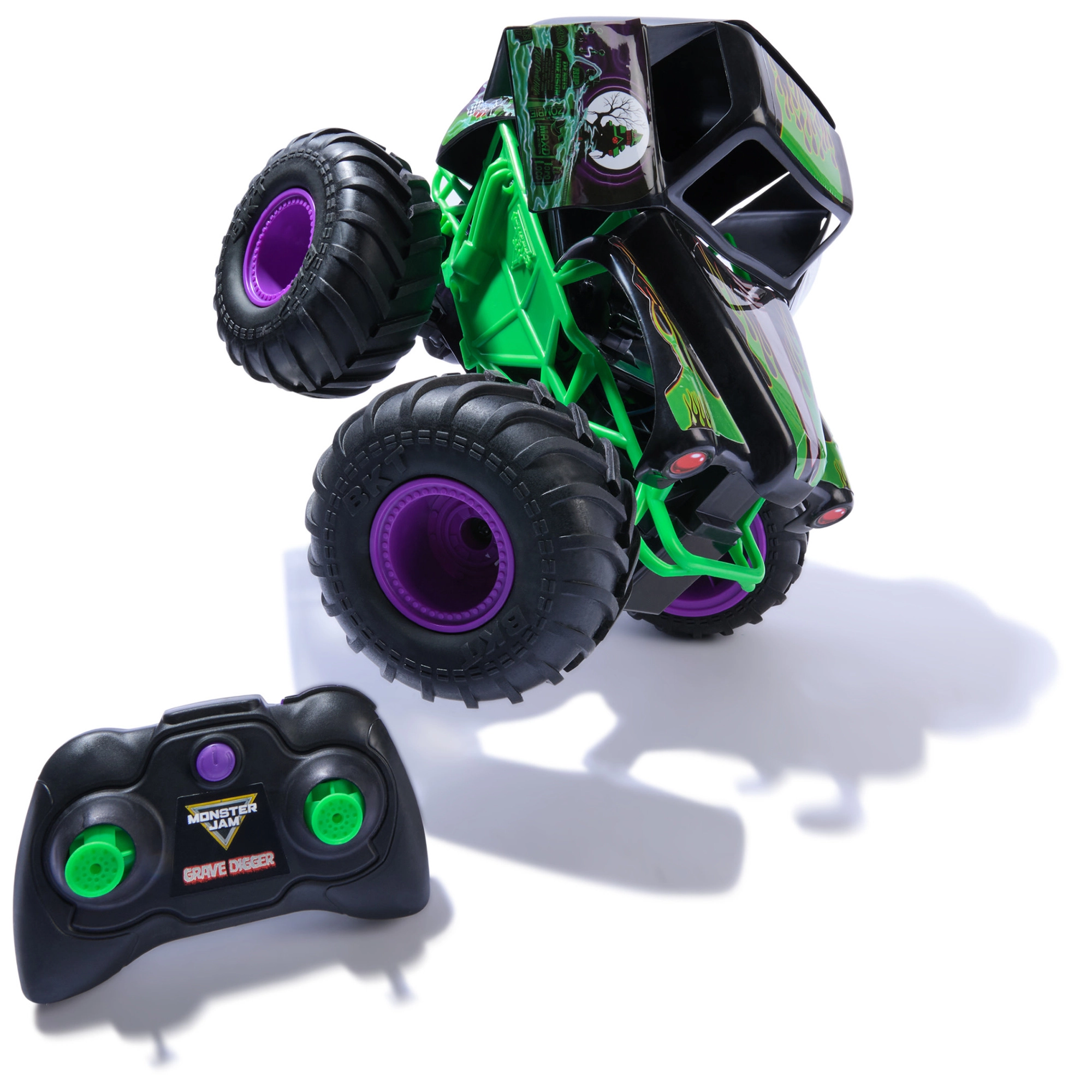 Legendarna ikona MONSTER JAM stiže u vašu kolekciju: GRAVE DIGGER s upečatljivom crno‑zelenom grafikom, ogromnim gumama i povišenim podvozjem. Mjerilo 1:15 donosi sjajan omjer veličine i upravljivosti, dok gumeni profili osiguravaju trakciju na asfaltu, tepihu i grubljim podlogama.
