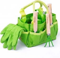 Kantica s čvrstom mlaznicom te gornjom i bočnom ručkom dobro pristaje malim ručicama i omogućuje precizno zalijevanje bez prolijevanja. Elastični rubovi na zapešću rukavica sprječavaju ulazak nečistoća i drže rukavice sigurno na mjestu. Set se sastoji od 6 dijelova i savršen je poklon za djecu od 3 godine naviše.