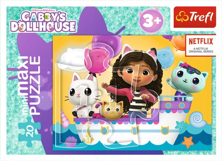Dječje puzzle Trefl MiniMaxi s motivom Gabin mačji domek nude 20 velikih dijelova idealnih za male ruke. Potiču finu motoriku, razvijaju koncentraciju i zapažanje te pružaju zabavu za djecu od 3 godine. Zahvaljujući živim bojama i čvrstoj kartonskoj izradi savršene su za igru kod kuće i na putu.