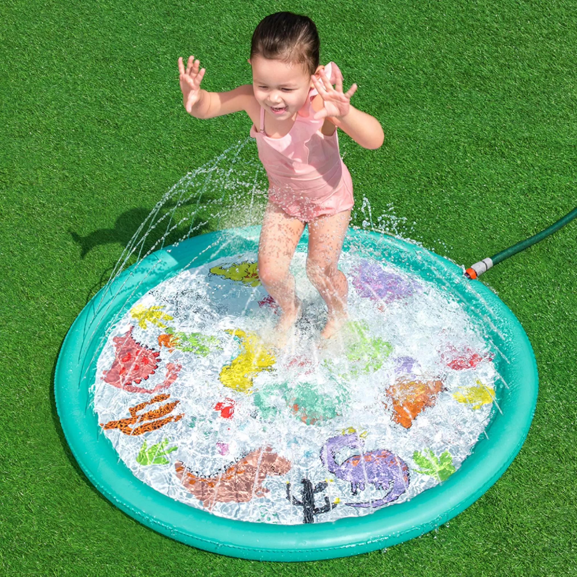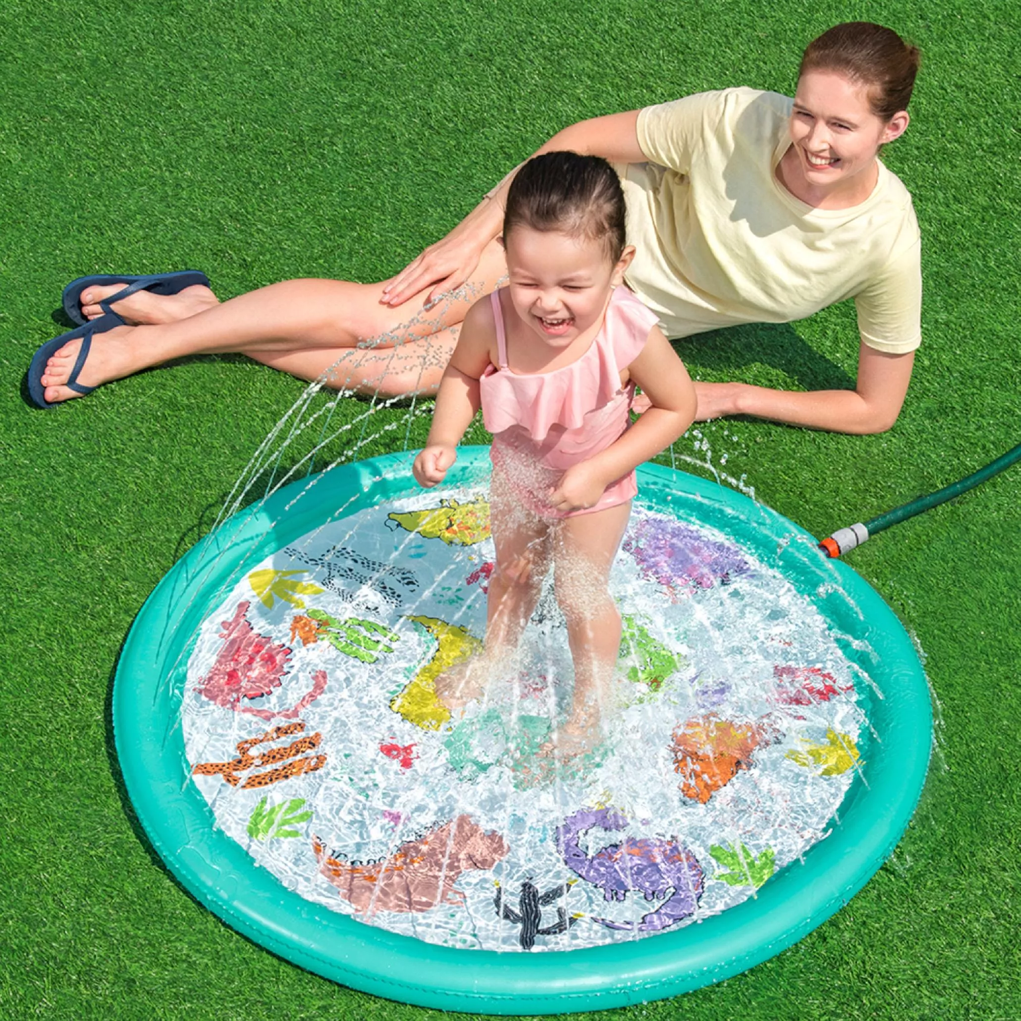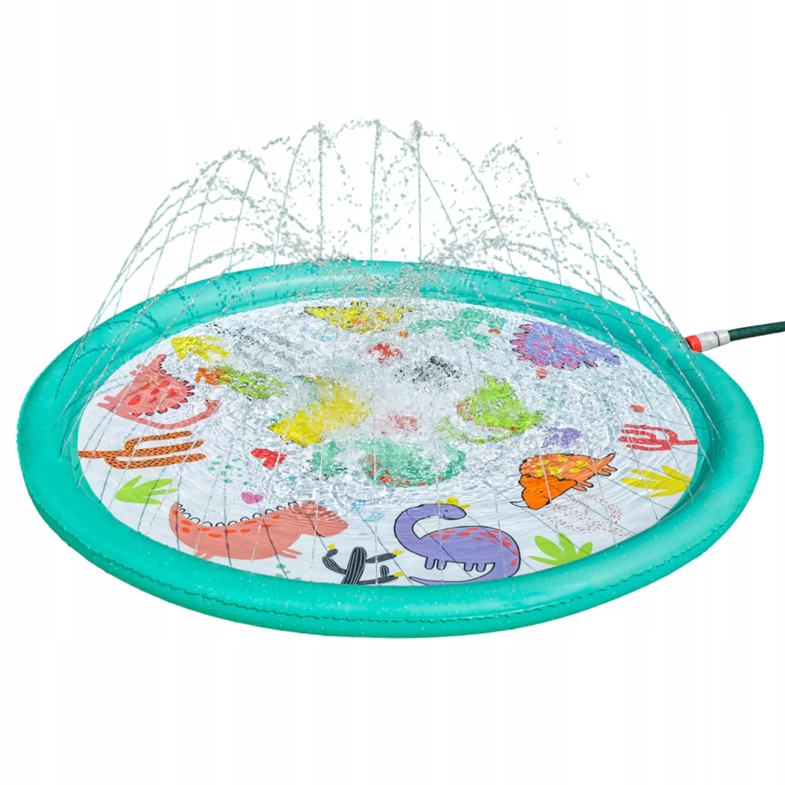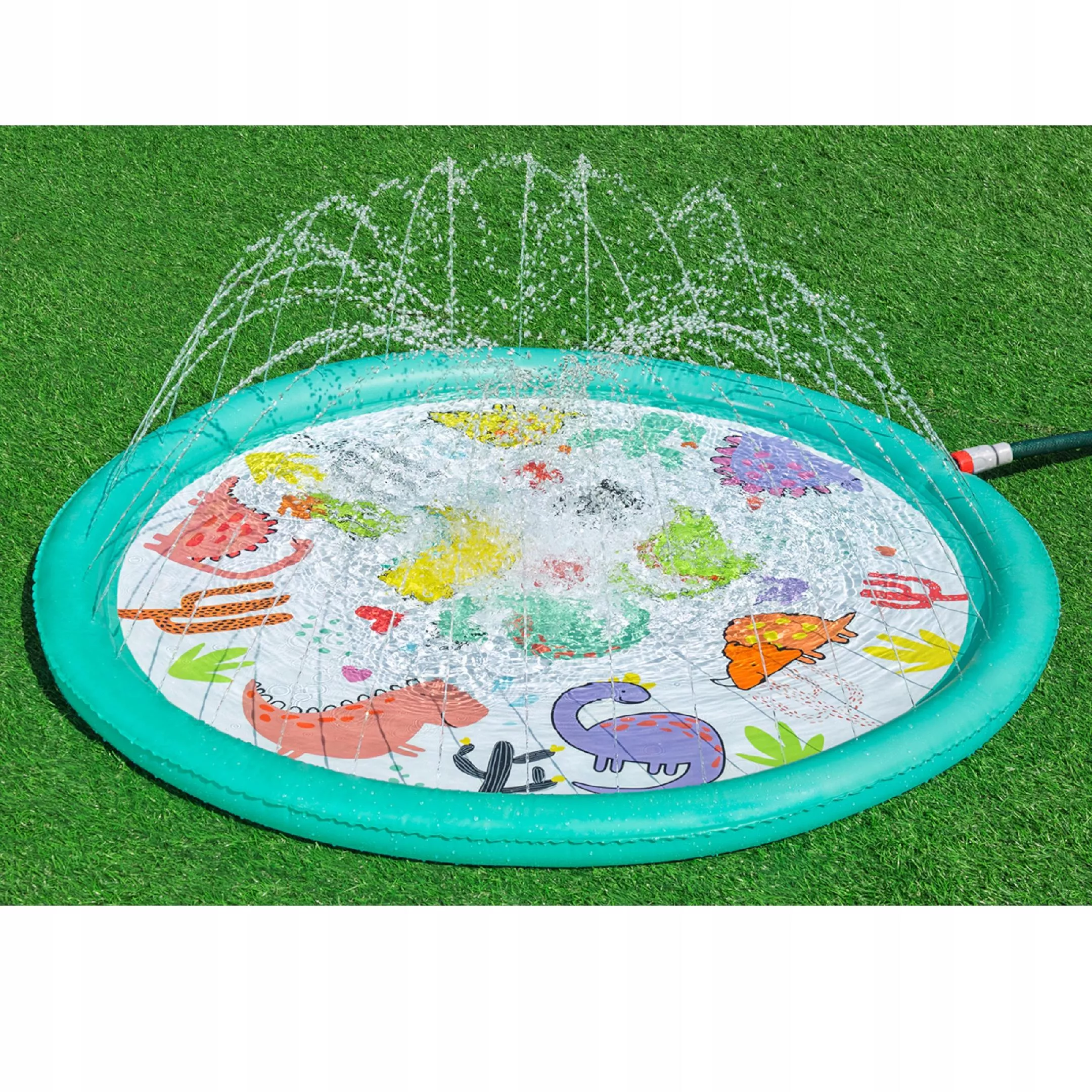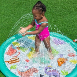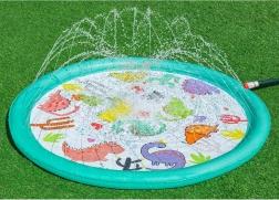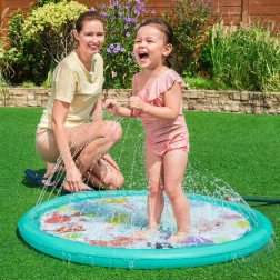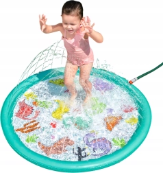 Ova napuhujuća prskajuća podloga donosi djeci puno radosti, osvježenja i aktivne vanjske igre tijekom vrućih dana. Jednostavno je priključite na crijevo, podesite tlak vode i mlaznice po obodu stvorit će nježnu vodenu fontanu s podesivom visinom mlaza. Plitka površina idealna je za sigurnu igru i brčkanje.