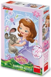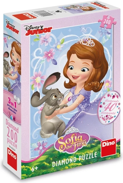 Zabavne dječje puzzle iz serije Diamond puzzle koje nakon slaganja ukrasite blistavim kamenčićima. Sadrži 200 dijelova, 40 samoljepljivih kamenčića i ljepilo za fiksiranje slike. Veličina složene slike je cca 33 × 47 cm.