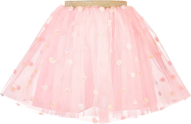 Preslatka svjetloružičasta til suknja za male djevojčice u dobi 3–5 godina oduševit će klasičnim raširenim krojem, elastičnim podesivim pojasom i nježnim ružicama na više slojeva tila. Ima glatku podstavu za udobnost i ukrasnu zlatnu vrpcu u struku – idealna za zabave, karneval, fotografiranje i svakodnevnu igru.