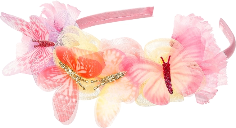 Uljepšajte frizuru nježnim i stilskim dodatkom. Obruč Souza Lilyanne spaja satenasti premaz s prozračnim til cvjetovima i decentnim leptirićima sa sjajnim detaljima. Paleta boja seže od svijetloružičaste do boje vina s blagim dodirom žute, pa se lako uklapa u svečani i svakodnevni look.