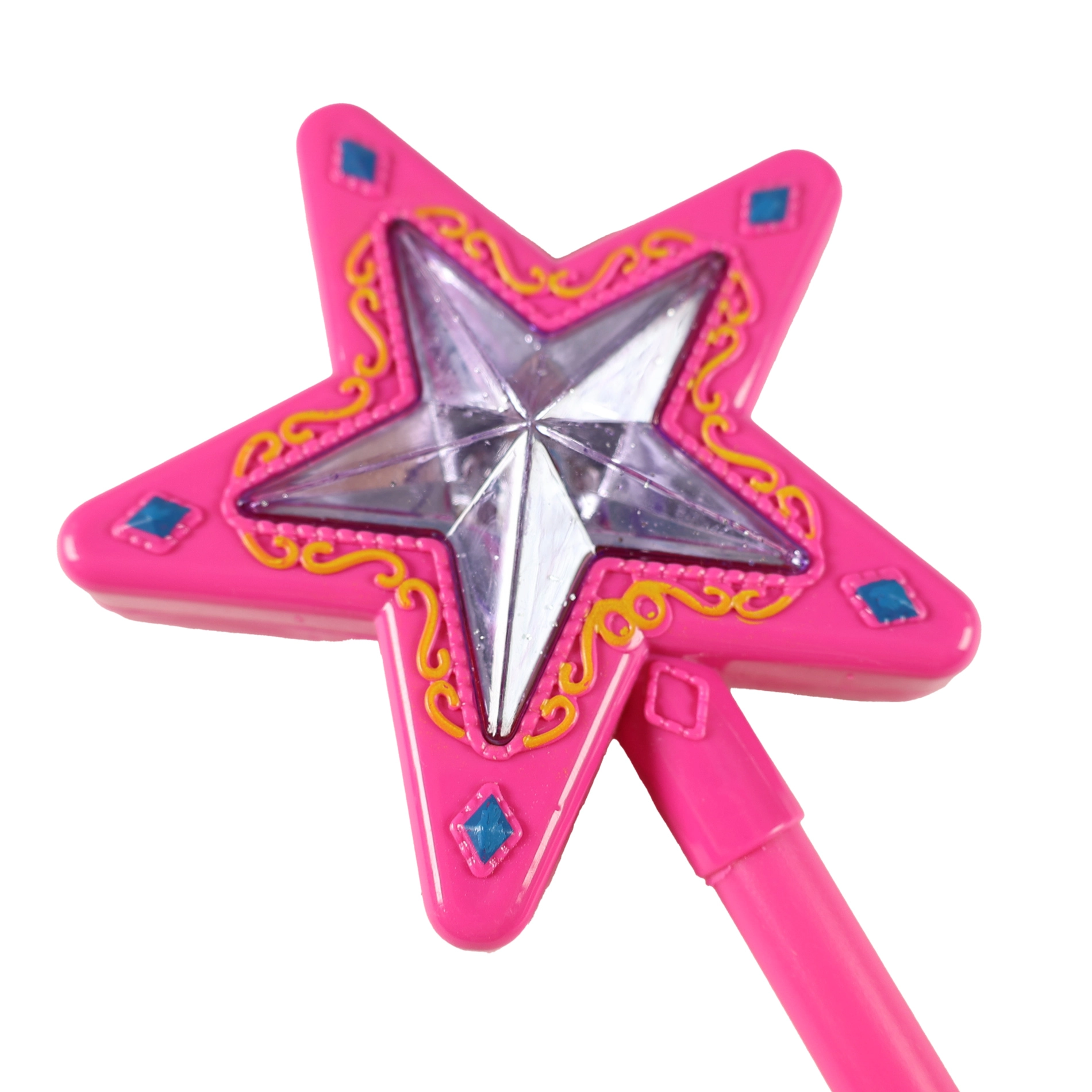 Ovaj elegantni štapić idealan je dodatak za sve ljubiteljice bajki, kostima i karnevala. Jednim zamahom pokreće raznobojne svjetlosne efekte i ugodne zvučne pratnje koji potiču maštu i kreativnu igru.