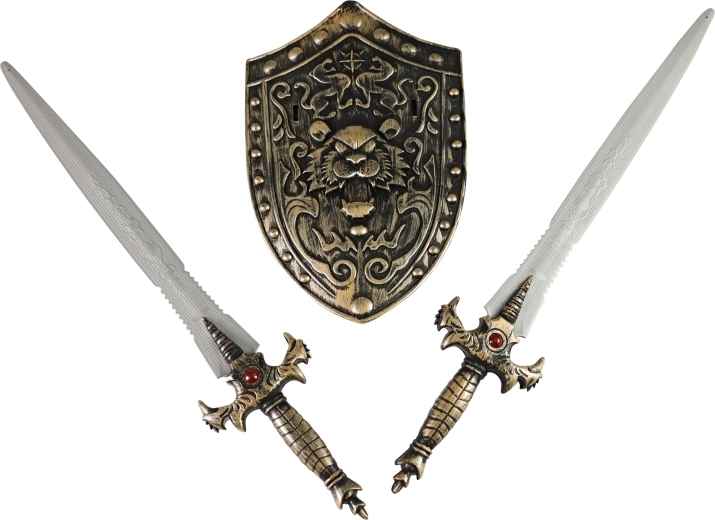 Postanite hrabri vitez i zaštitite svoje kraljevstvo! Dječji viteški set sa štitom i dvama mačevima duljine 53 cm odličan je izbor za akcijske igre junaka. Spaja sigurnu zabavu i razvoj dječje mašte, bilo kod kuće, u dvorištu ili na karnevalu.
