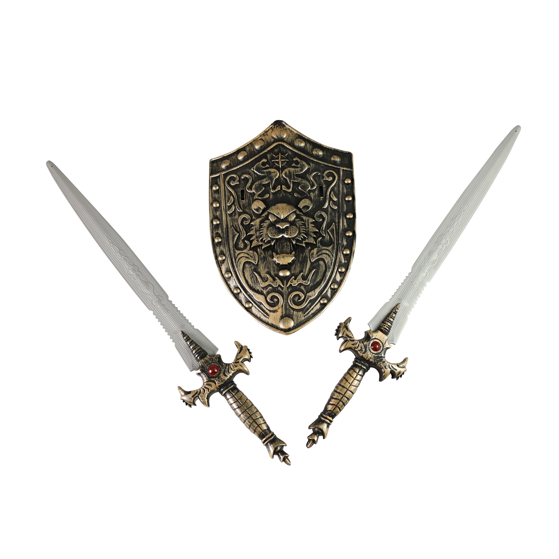 Oprema je dizajnirana tako da dobro leži u dječjoj ruci i izdrži intenzivnu igru. Štit pruža pouzdanu “zaštitu”, a par mačeva omogućuje dvoboj ili igru u paru.